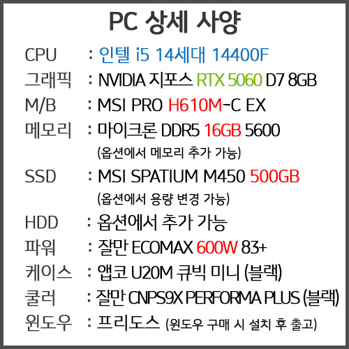 인텔 i5 14400F + RTX 5060 게이밍 조립컴퓨터